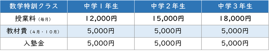 数学特訓クラス(中学1~3年生)