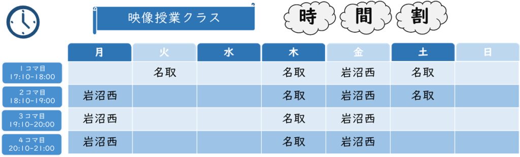 ※映像授業を受講の生徒は、映像授業クラスの半額の金額(授業料・教材費)で追加受講可能